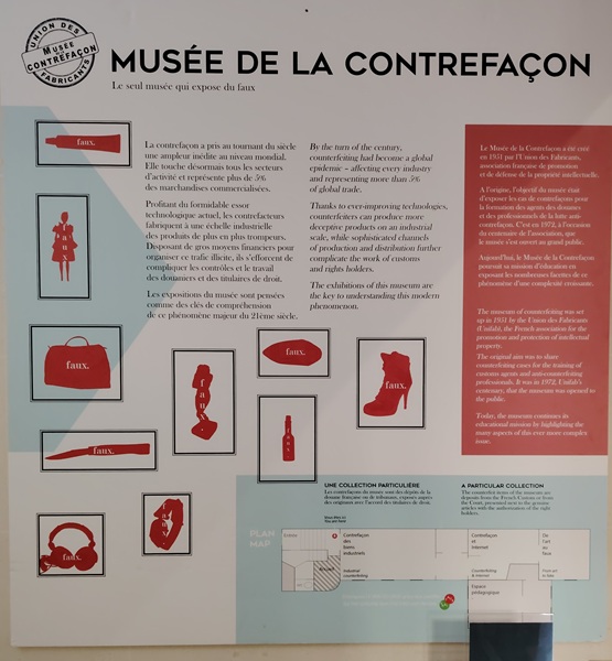 Musée créé en 1951 par l’union des fabricants. Il a pour objectif de sensibiliser le public aux dangers et impacts de la contrefaçon.
